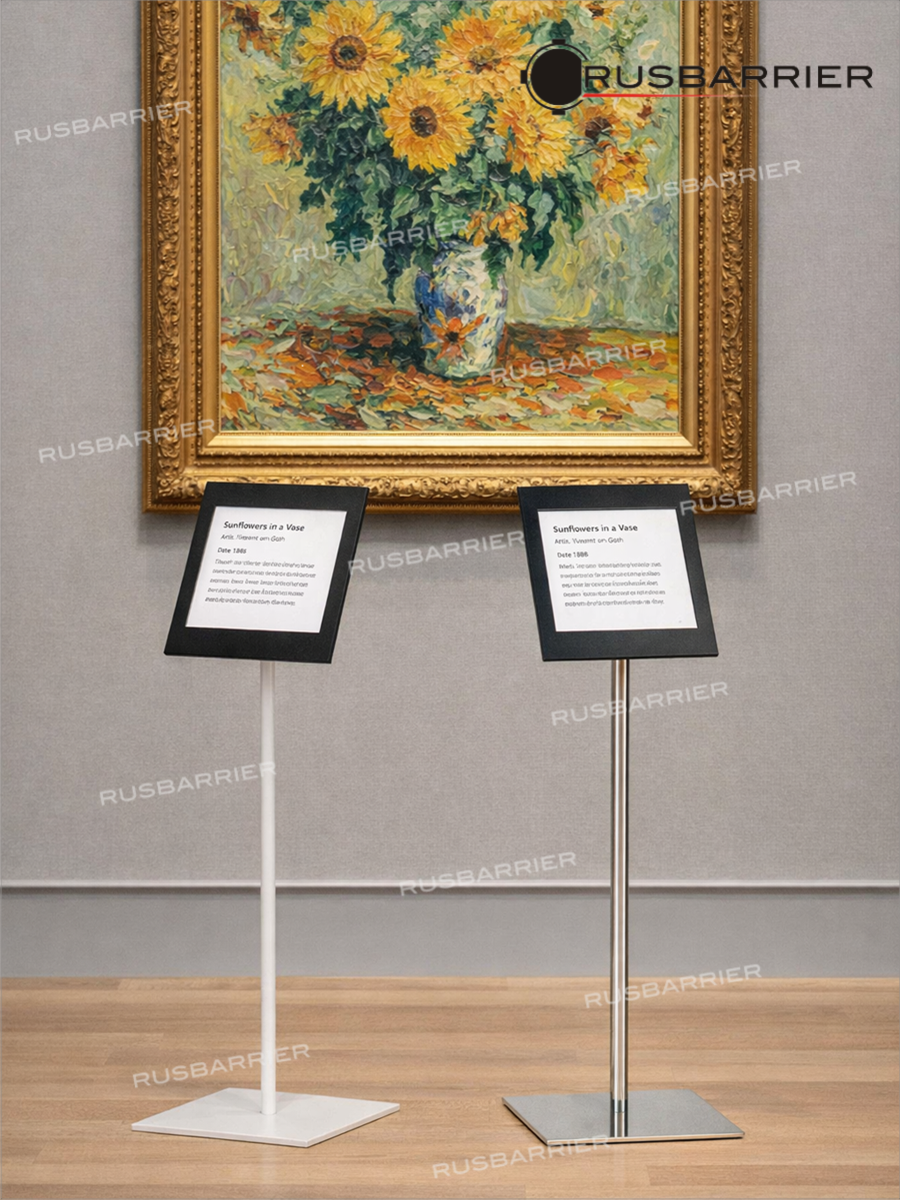 Информационные стойки делают экспозицию более понятной, повышают уровень восприятия искусства и создают ощущение продуманного, профессионального пространства. Это не просто держатель информации — это элемент имиджа вашего музея или выставки.