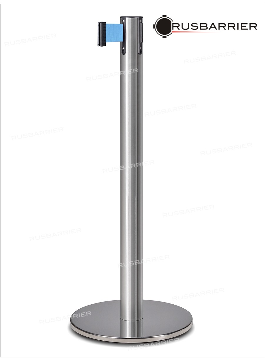 Артикул: PSLN-116313 lt/blue Столбик ограничительный серии PROBARRIER с вытяжной лентой состоит из трубы диаметром 63 мм, выполненной из итальянской нержавеющей высококачественной полированной стали марки AISI 304, пластиковой сменной катушки с 3-метровой лентой, дискового основания d350мм., декоративного диска. Комплект поставки: