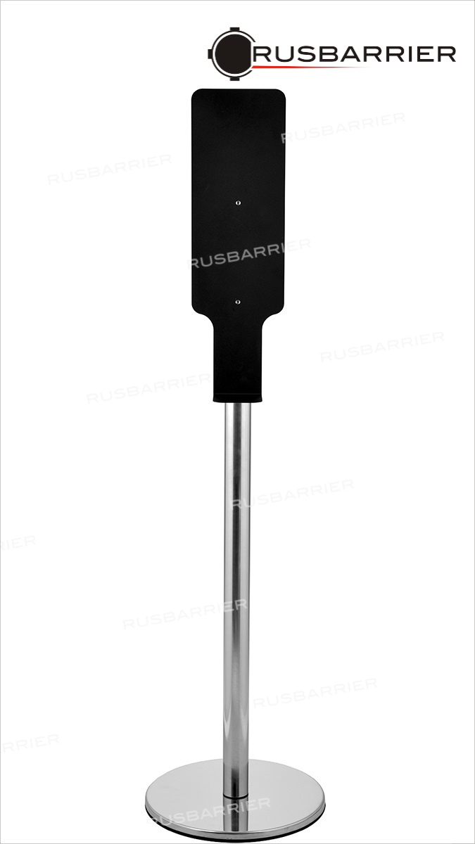 Мобильная стойка для диспенсера выполнена из нержавеющей трубы марки AISI 201 диаметром 50 мм с толщиной стенки 1,5мм, полки-держателя из стали толщиной 1,5 мм, цельнометаллического дискового основания диаметром 350 мм и высотой 16 мм, декоративного диска.Комплект поставки: